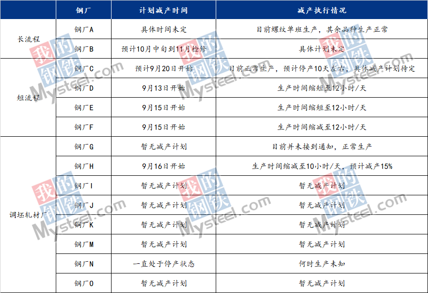 根据Mysteel调研,受能耗“双控”影响,近期浙江省多数钢厂都收到了减产的通知,并计划逐步落实减产。目前短流程钢厂减产计划主要集中在9月13日—9月30日,长流程钢厂具体减产检修计划未定,部分调坯轧材厂生产时间也受到一定限制。