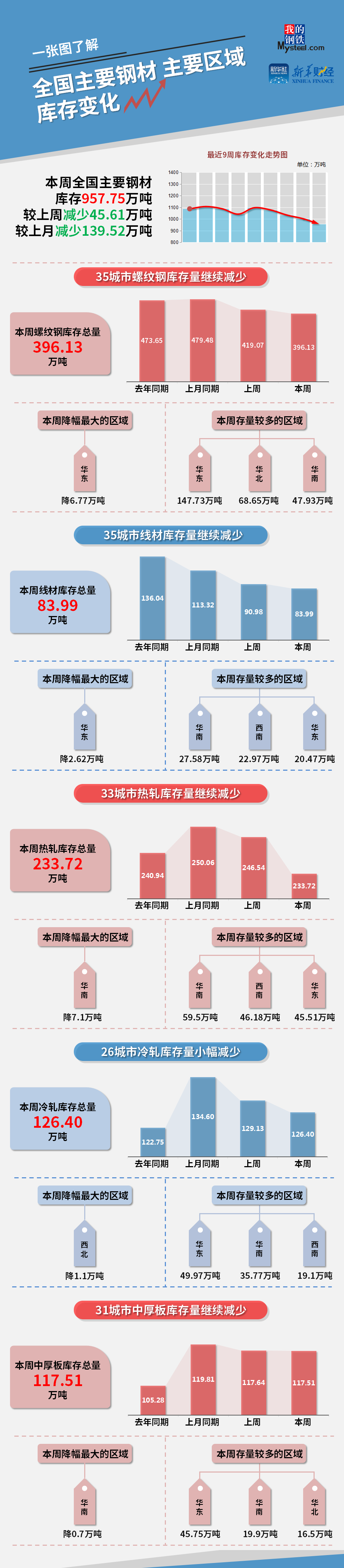 (备注:本文中钢材社会库存总量=35城市螺纹库存+35城市线材库存+33城市热轧库存+23城市冷轧库存+31城市中厚板库存)