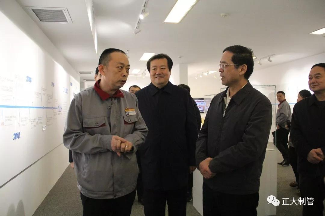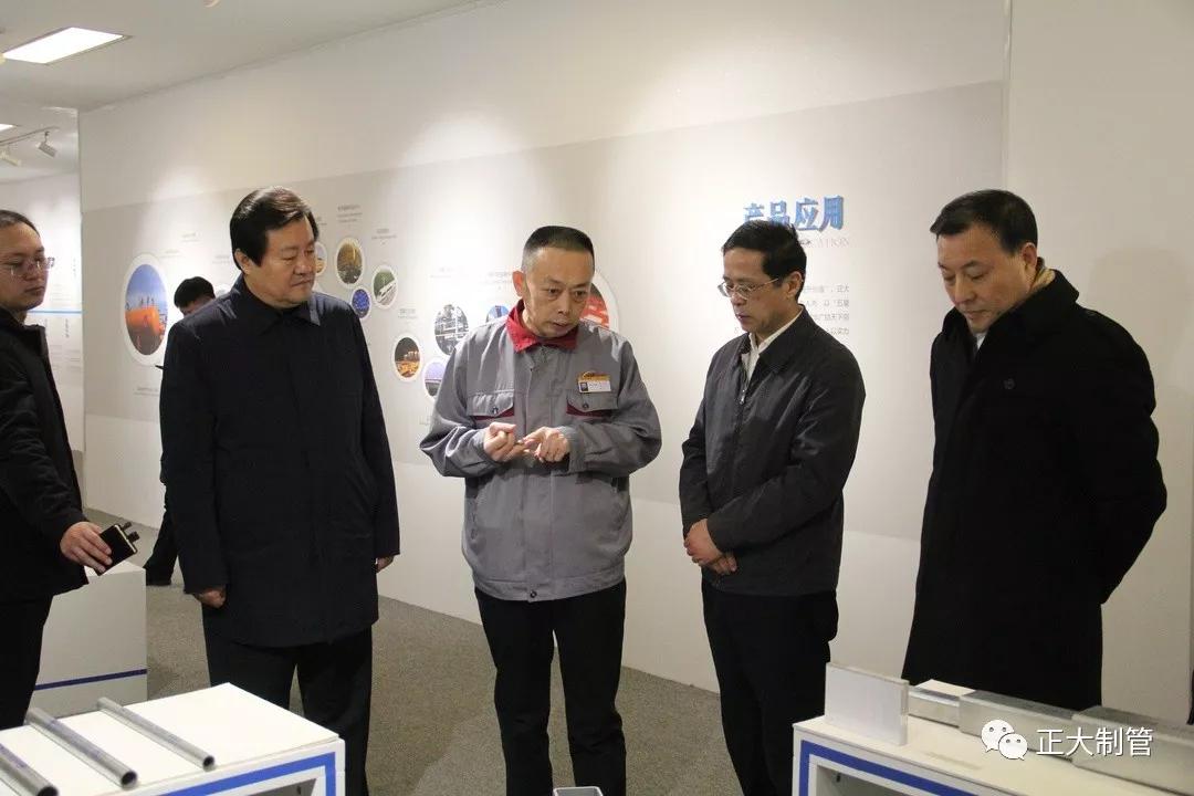 随后,张洪顺总裁引领叶冬松一行来到正大制管产品 (文化)展厅进行参观,叶冬松主席一边参观一边与张洪顺总裁亲切交谈,过程中,叶冬松主席向张洪顺总裁详尽了解正大制管的创业发展历史、品牌市场覆盖、产品营销规模、企业文化理念、现代管理创新等内容,张洪顺总裁一一做了详细介绍。