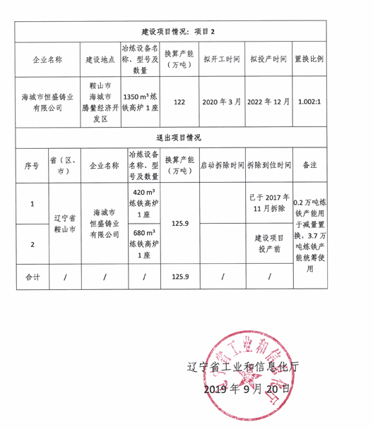 近日,辽宁工信厅发布关于鞍山市后英集团和恒盛铸业炼铁产能置换项目炼铁
