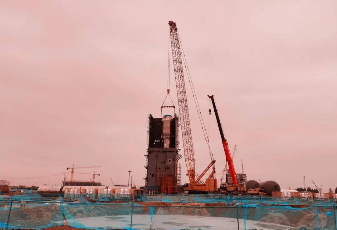 10月4日,制氧站工程现场传来捷报,现场完成下塔吊装入冷箱就位的关键节点。