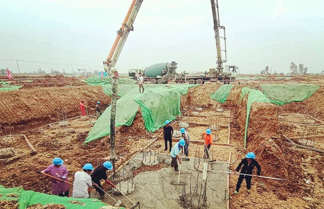 10月1日,烧结室高跨垫层开始浇筑。