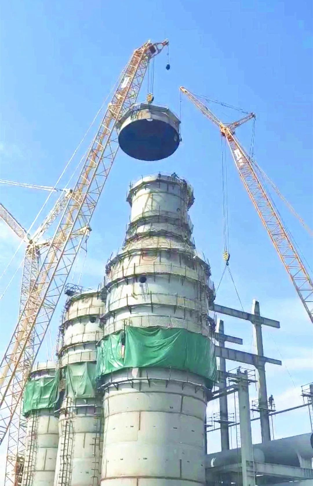9月28日3号热风炉进行了顶部安装,成功封顶。