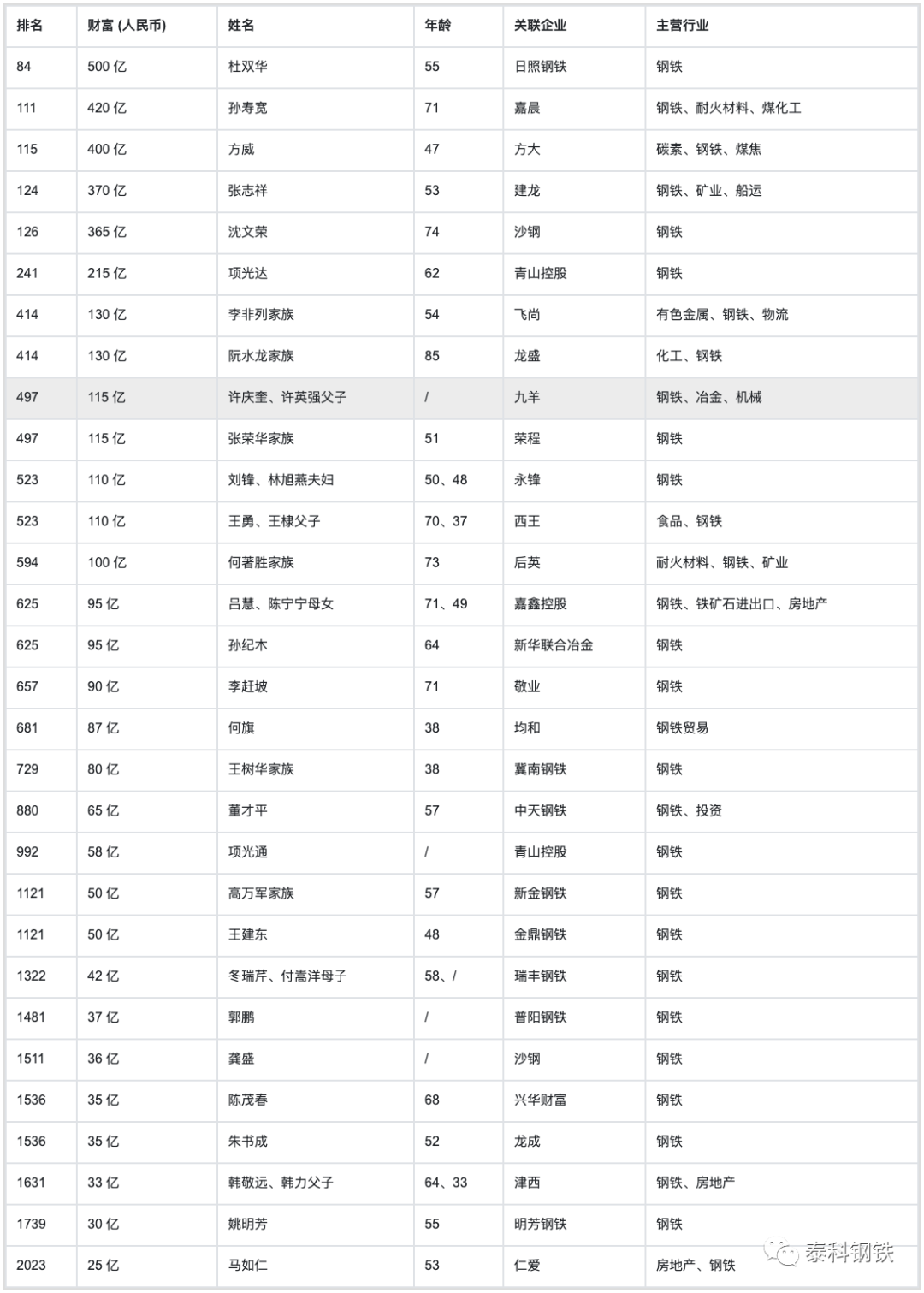 2020年10月20日,全球最大的财富榜排榜机构胡润研究院联合发布《2020衡昌烧坊·胡润百富榜》,这是胡润研究院自1999年以来连续第22次发布“胡润百富榜”。马云财富增长1250亿,以4000亿元第四次成为中国首富;马化腾财富增长1300亿,以3900亿元位列第二!今年有30位钢铁行业的企业家入围榜单,日照钢铁杜双华以500亿财富成为钢铁行业首富。