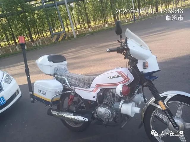 网友提供一张星原集团附近十字路口一辆安装着警示灯的电动巡逻车。