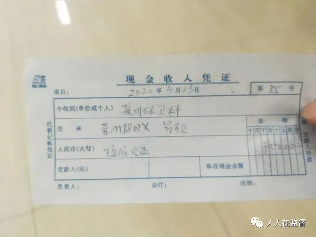 网友提供一张星原集团安保科开出的罚款单据。