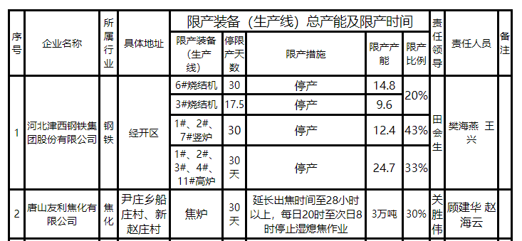 唐山钢企6月停限产明细来了!建龙、津西、瑞丰、东华、凯恒、经安、港陆、华西、荣程唐山特种钢