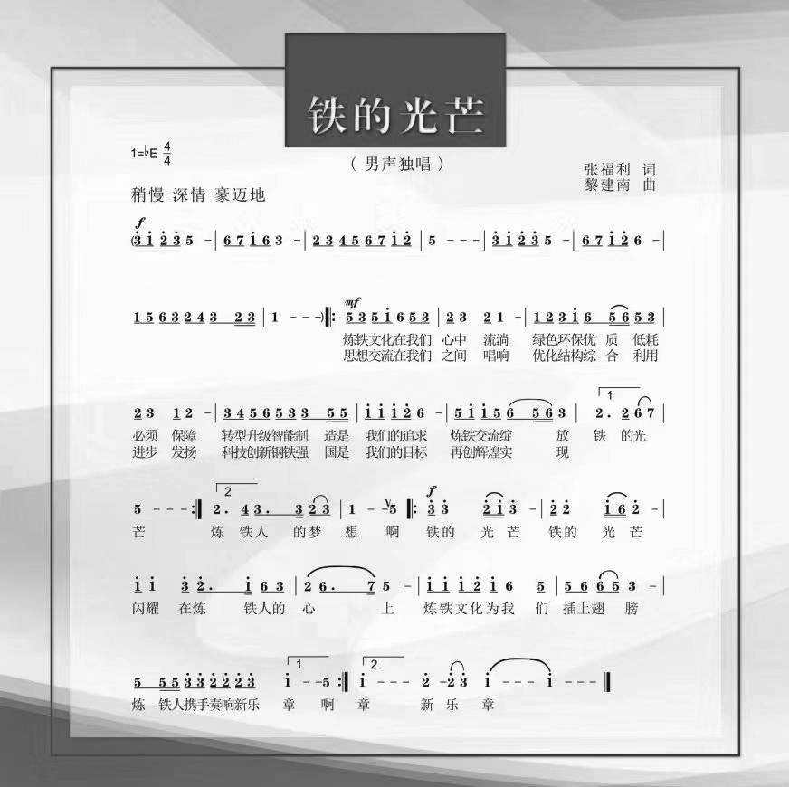 张福利为《炼铁交流》杂志创刊十周年歌曲《铁的光芒》作词