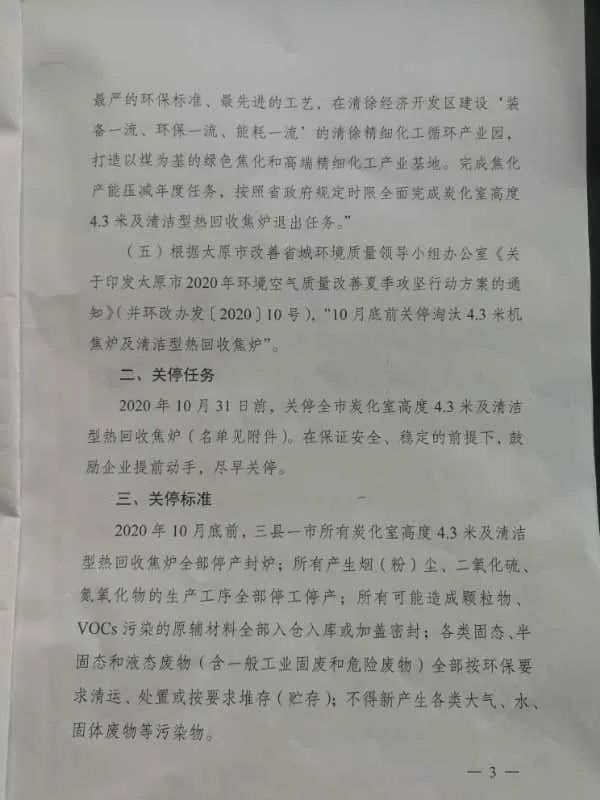 千万吨焦化产能将关停!太原市关于按期完成焦化产能淘汰任务的通知