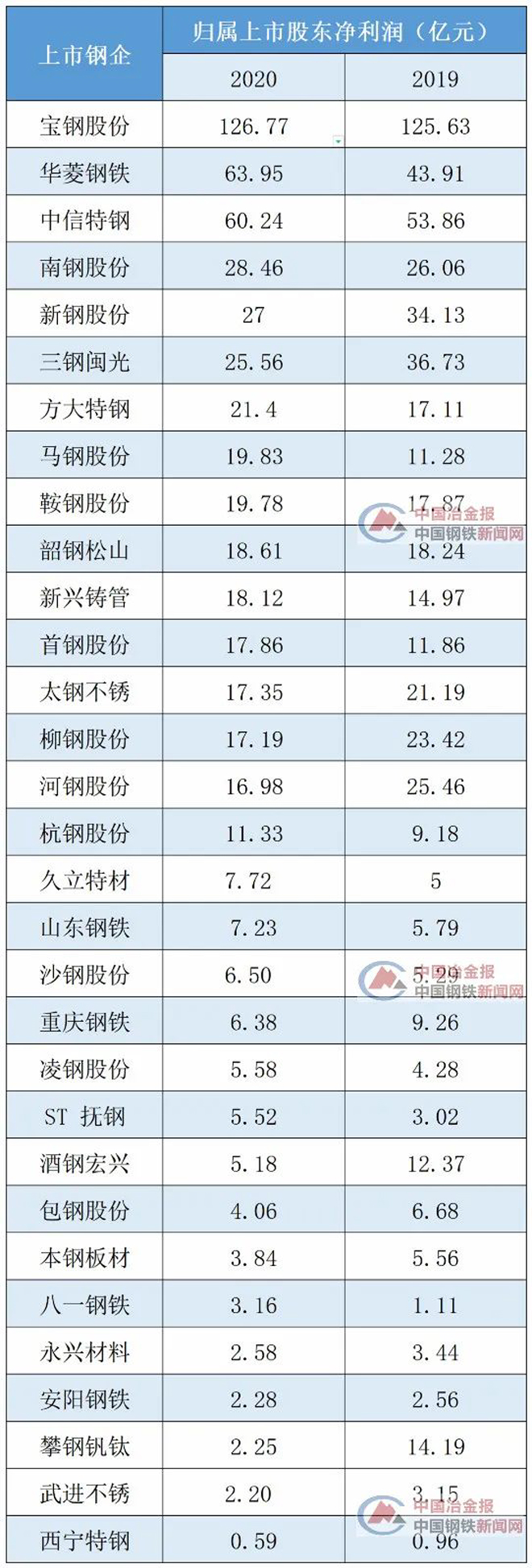 2020年上市钢企利润榜、营收榜、高管薪酬榜等出炉!