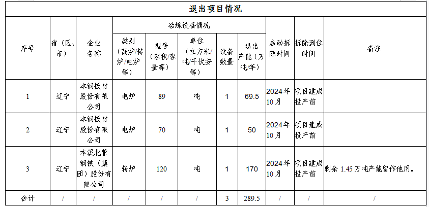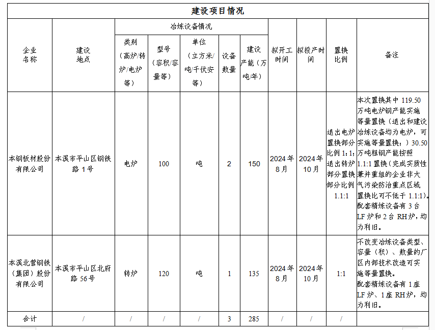 本钢集团炼钢建设项目产能置换方案公告