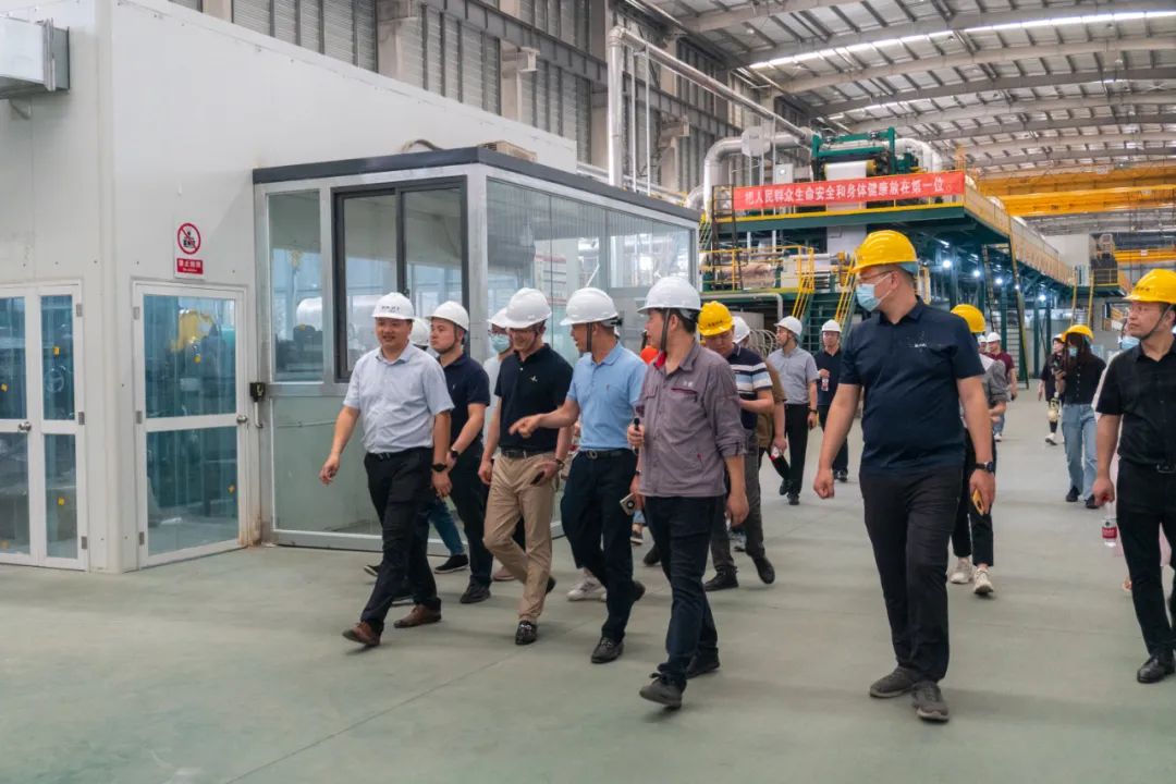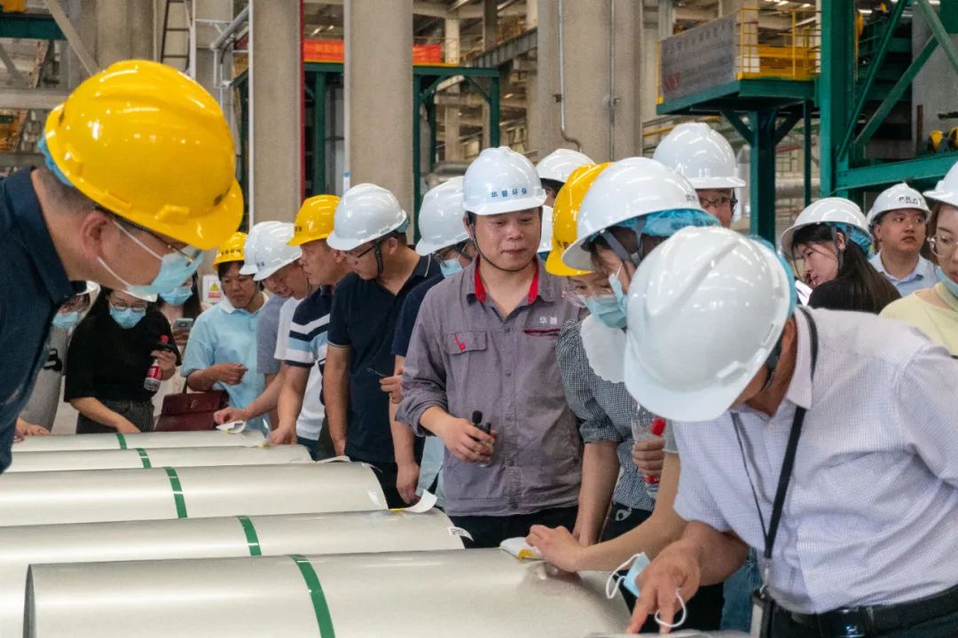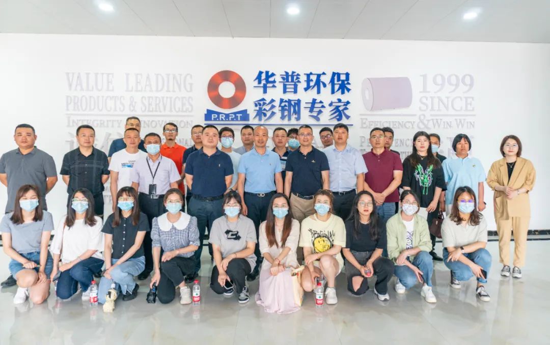 中南绿建嘉宾一行先后参观了华普数字化展厅及镀铝锌(镁)生产线和彩涂生产线,全方面了解了华普彩钢20多年的发展历程及在产品技术研发、智能制造管理系统方面的成就,并就产品专业知识和行业发展态势进行了分享、交流。