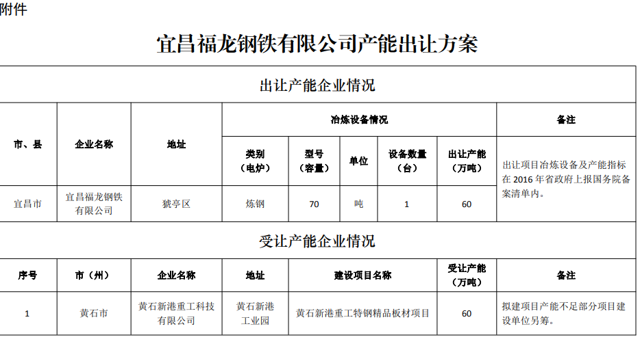 附件:宜昌福龙钢铁有限公司产能出让方案