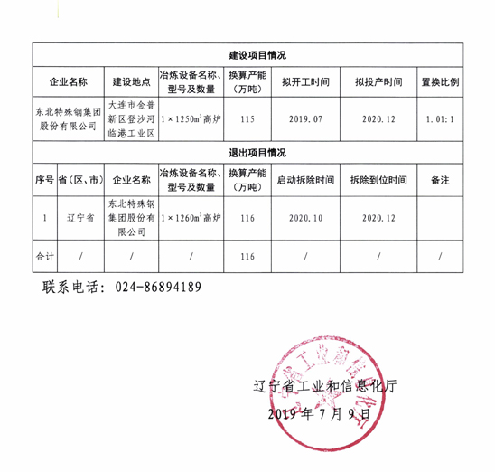 按照《国务院关于化解产能严重过剩矛盾的指导意见》《国务院关于钢铁行业化解过剩产能实现脱困发展的意见》和《钢铁行业产能置换实施办法》要求,现将东北特殊钢集团股份有限公司高炉易地大修项目产能置换方案子以公告,欢迎社会公众进行监督。