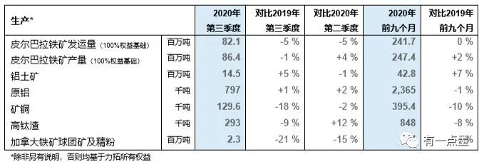 力拓集团首席执行官夏杰思(J-S Jacques)表示:“在第三季度,我们大部分资产运营表现良好,赶上了被计划维护活动影响的进度,铁矿业务表现突出。我们仍在适应与新冠疫情(COVID-19)共存的新型运营环境。我们的资本支出指导目标和主要产品的2020年生产指导目标保持不变。”