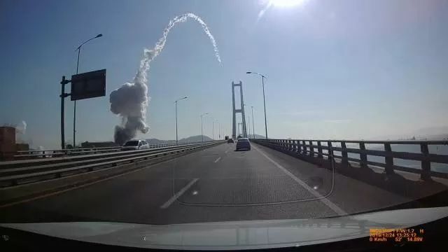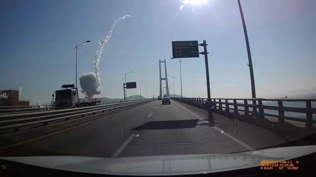 据韩联社、韩国《中央日报》报道,钢铁厂在5分钟内连发2次爆炸,现场瞬间腾起黑烟。 爆炸产生的铁片,落到了附近的李舜臣大桥上。目前,有关部门已对这座大桥采取交通管制措施。 有行车记录仪拍摄下了爆炸瞬间的画面:一股烟柱冲天升起,有如导弹发射。