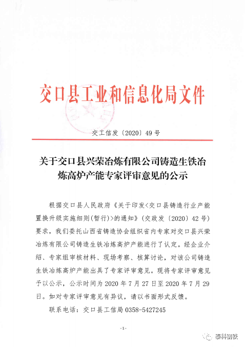 山西省交口县退出高炉一座 时间:2020-08-03 11:28 来源:中国炼铁网 作者:zgltw 点击:次 (责任编辑:zgltw) 上一篇:惨!世界第一大钢企上半年亏损117亿,二季度粗钢产量同比减少39.4% 下一篇:清凉送一线 职工来点赞