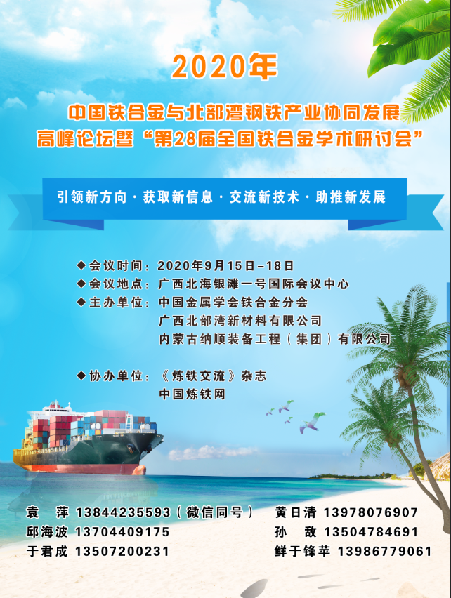 欢迎参加2020中国铁合金与北部湾钢铁产业协同发展高峰论坛暨“第28届全国铁合金学术研讨会”