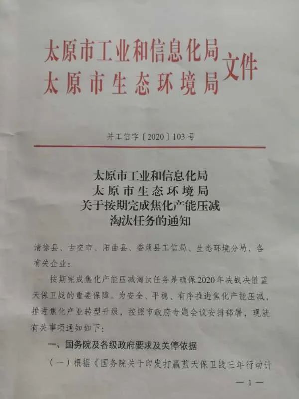 千万吨焦化产能将关停!太原市关于按期完成焦化产能淘汰任务的通知